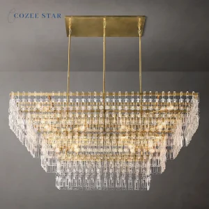 Marignan Rectangular Chandeliers Lustre Modern Retro Crystal Brass Chrome Black Pendant Lights Dining Room Living Room Lamps