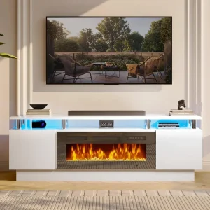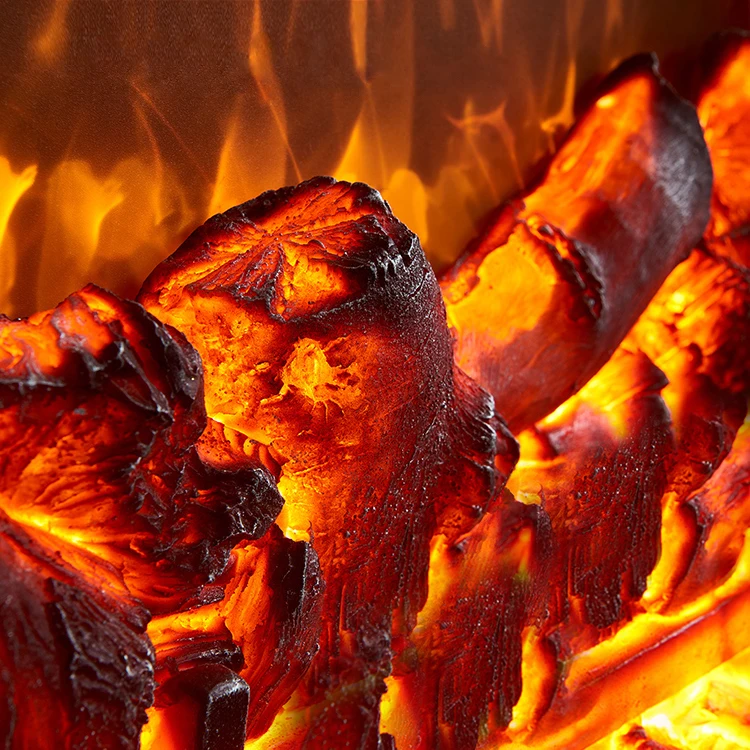 The vivid charcoal in the 2D decorative fireplace burns red under the light of LED, and the flicker light on the second