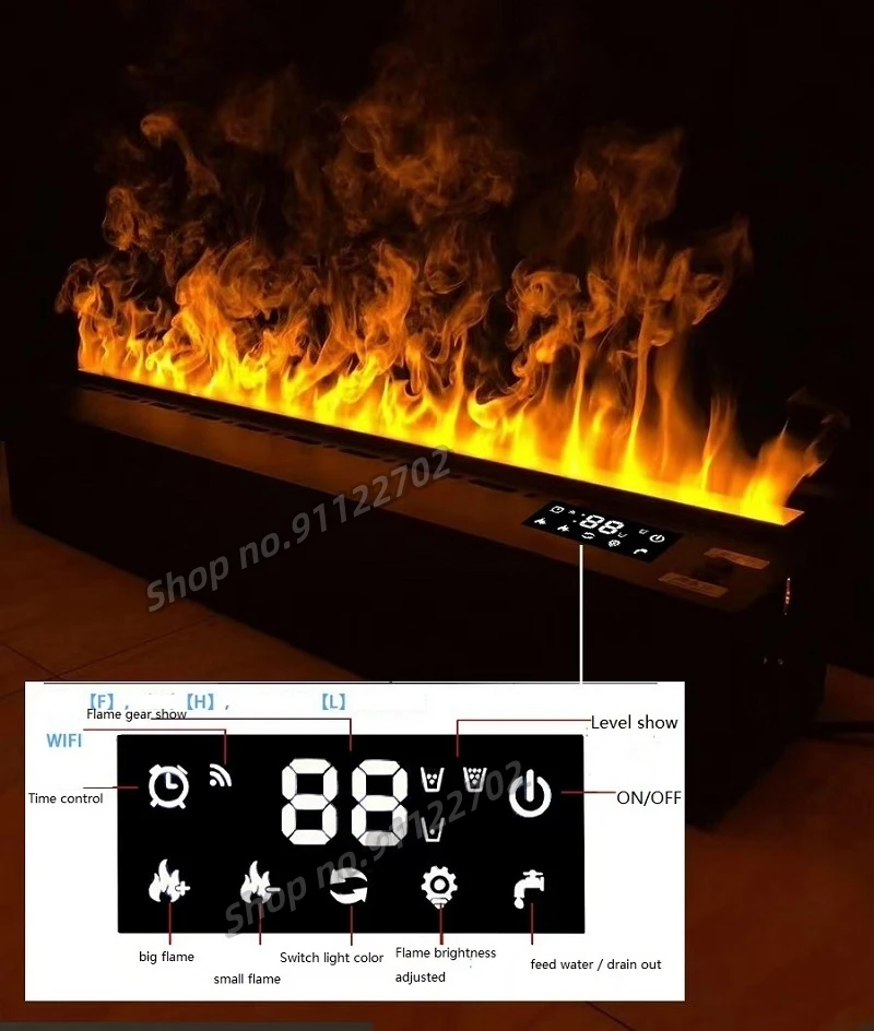 Water vapor fireplaces work with electric fireplaces and water , use a combination of LED lights and mist to create the illusion of flames and smoke. The mist is produced by ultrasonic technology that turns water into a fine vapor, which is then released from the fireplace's log or rock bed. The result is a flame effect that's safe and easy to use.In order to delay use life of water steam fireplace that your fireplace need to choose purified water not hard water.