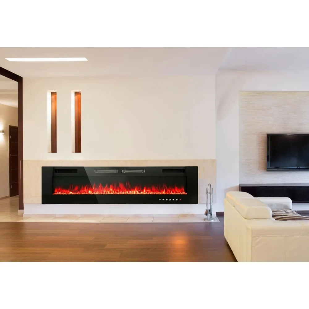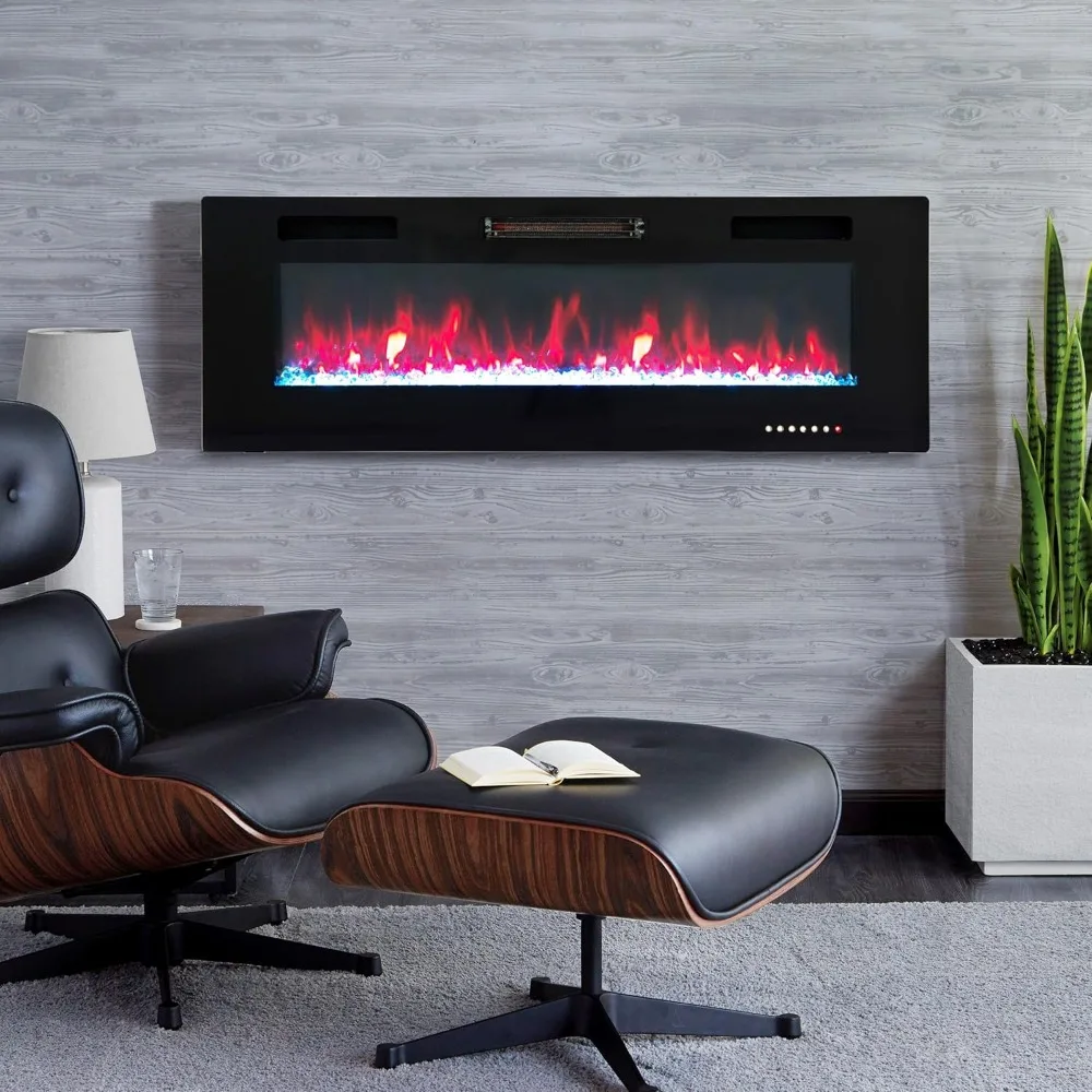 - 【High Power Heater & Safty Ensured】: The electric fireplace is CSA certificate approved, and also has auto-heat kill safety to avoid the superheating. 750W/1500W front air heating system is more effective in warming up your room, heating up to 400 square feet. The 3.86 ultra thin screen makes the electric fireplace easily mounted and recessed to the walls
