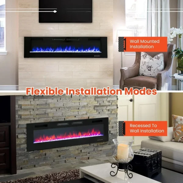 - 【Wall Mounted & Recessed Installation】: The fireplaces dimension is 50 * 18.1 * 3.86, it can be installed as recessed or Wall Mounted. The 3.86 ultra thin screen makes the electric fireplace easily mounted or recessed to the walls. For recessed-in wall installing, the detailed wall opening size please see the size picture. But either way, its important to remove the front cover glass before installing in order to avoid any unnecessary damage