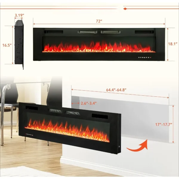 - 【High Power Heater & Safty Ensured】: The electric fireplace is CSA certificate approved, and also has auto-heat kill safety to avoid the superheating. 750W/1500W front air heating system is more effective in warming up your room, heating up to 400 square feet. The 3.86 ultra thin screen makes the electric fireplace easily mounted and recessed to the walls