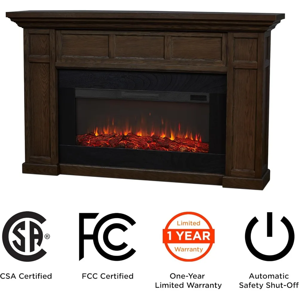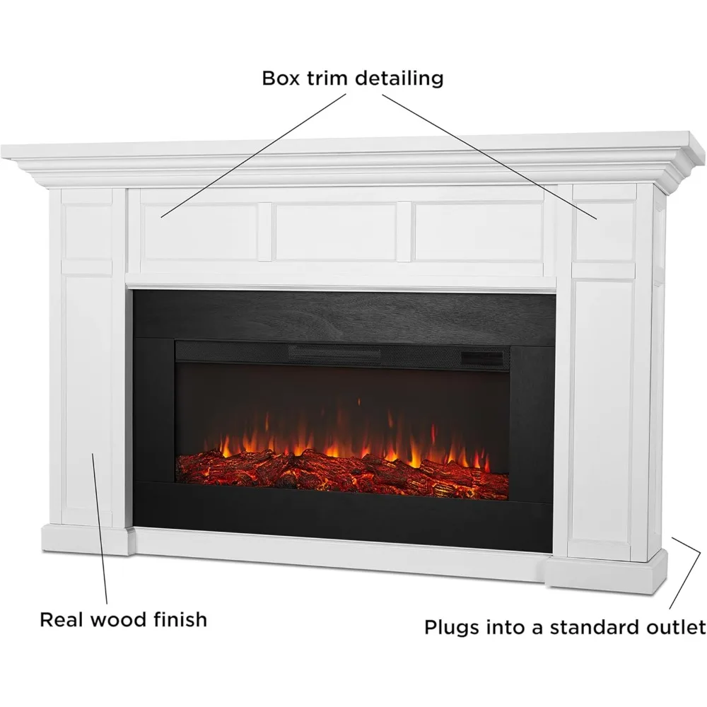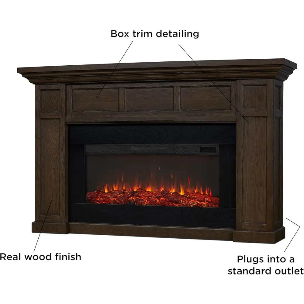 - Includes hardwood veneered MDF mantel, Electric Firebox, user-friendly remote control, hardware and an anti-topple device