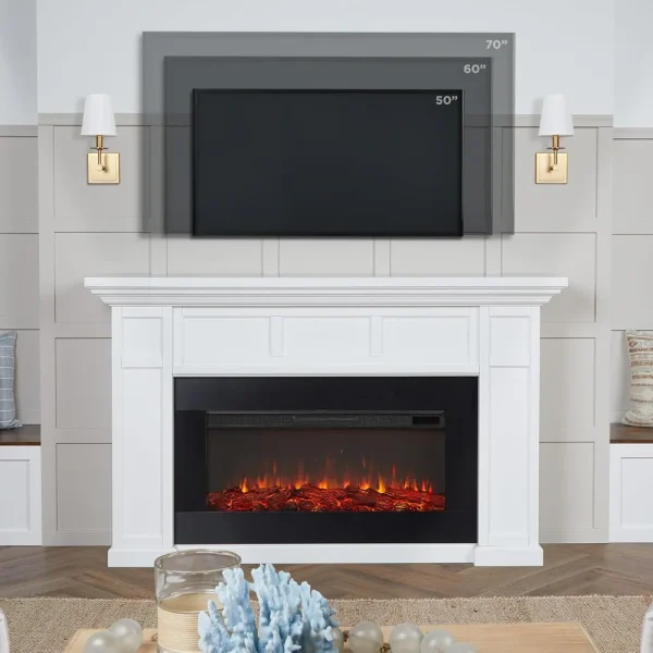 - Includes hardwood veneered MDF mantel, Electric Firebox, user-friendly remote control, hardware and an anti-topple device