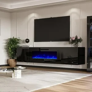 Be the first to review “80” Modern Electric Fireplace TV Stand, Entertainment Center with 50″ Electric Fireplace, Wood Media Console Cabinet for TVs up”