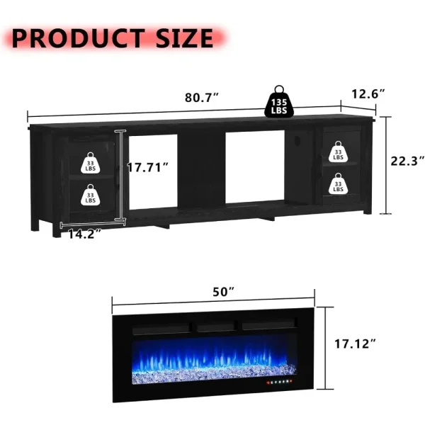 • Stable and Durable: Made by particleboard with black embossed melamine veneer on both sides, the surface of this TV stand for living room is smooth and not easy to deform. Carbon log and crystal stone can simulate burning flames, creating comfortable and warm ambience. With reasonable structure design, the product can hold 60kg totally
