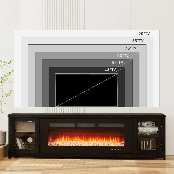 • Stylish Fireplace TV Stand:  fireplace TV stand usually has a sleek and contemporary appearance that fits well with various interior decoration styles, enhancing the overall atmosphere with a combination of coziness and vogue while providing functionality