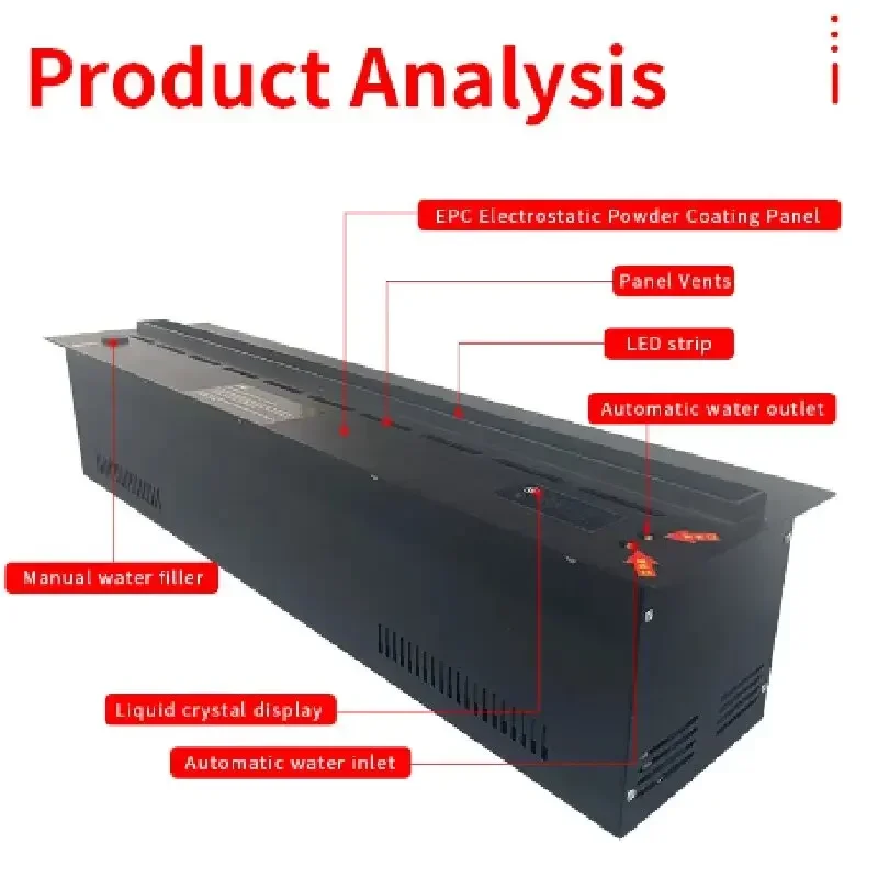 1. The table top and interior decoration of the place where the fireplace is in.stalled must be made of moisture-proof materials that cannot be easily damp