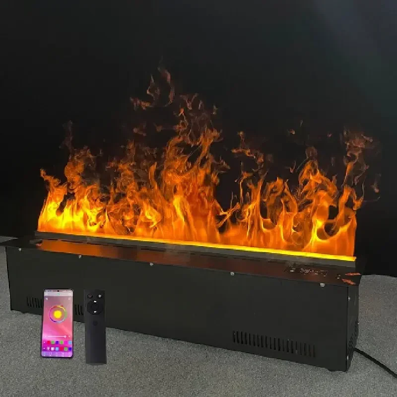 Water vapor fireplace has function of automatic water in and out. when the water is full, it will automatically stop the water fill-in and start to work, when the water is not enough , it will automatically stop working. The working time can be set by remote or Mobile APP directly.