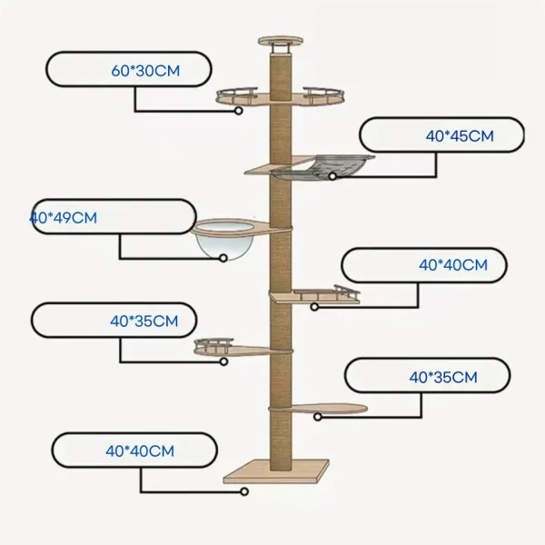 Project Description: Tongtian Pillar Cat Climbing Frame, Non occupying Cat Jumping Platform, Multi story Cat House, Integrated Stable and Thick Sisal Cat Grab Board.