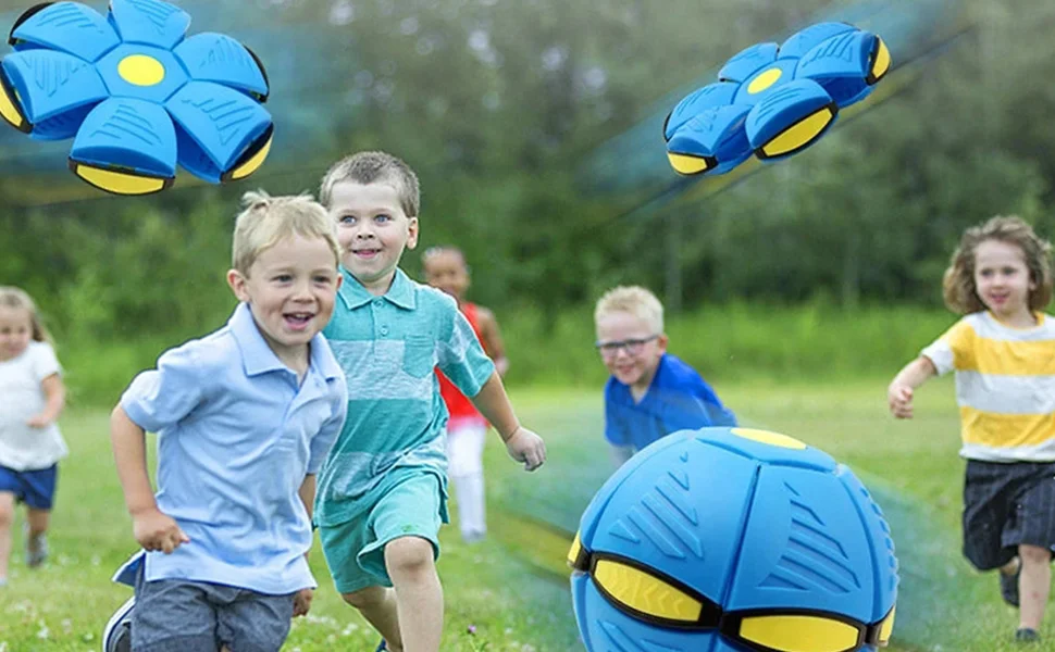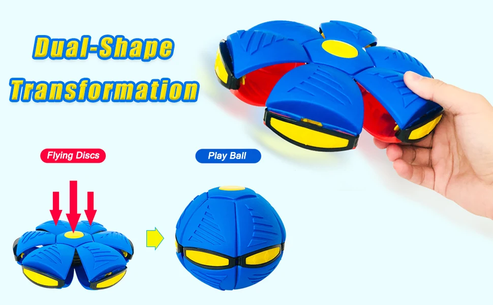 3. Two Forms: After pressing the flying saucer, press the yellow circle with the palm of your hand, directly fit the suction up and down, and switch freely. Fly disc will automatically turn into a ball in about 5 seconds