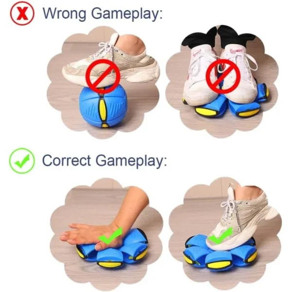 3. Two Forms: After pressing the flying saucer, press the yellow circle with the palm of your hand, directly fit the suction up and down, and switch freely. Fly disc will automatically turn into a ball in about 5 seconds