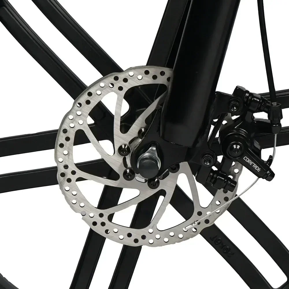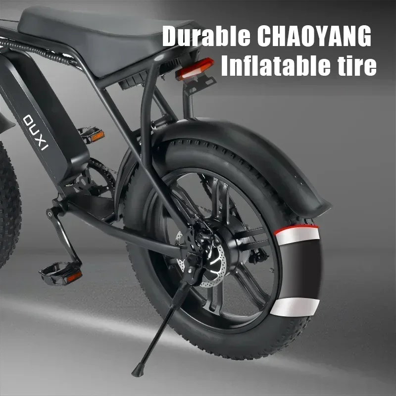 4. Excellent quality steel alloy frame, hydraulic suspension front fork and wear-resistant fat tires.