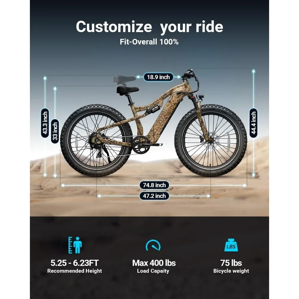 🚴𝟓 𝐑𝐢𝐝𝐢𝐧𝐠 𝐌𝐨𝐝𝐞𝐬 & 𝐄𝐱𝐜𝐞𝐥𝐥𝐞𝐧𝐭 𝐃𝐞𝐭𝐚𝐢𝐥: ①Electric Mode ②Pedal-assist Mode ③Cruise Mode ④Manual Mode ⑤Walk Mode. Feel free to switch your riding mode according to your needs or mood. PUCKIPUPPY made of light weight frame and high quality aluminum 6061 alloy, more sturdy and durable. Equipped with Shimano 7 speed transmission, precise and stable; 26″x 4″ fat tires bring more comfortable experience; Upgraded LCD intelligent displayprovides clear and powerful data support.