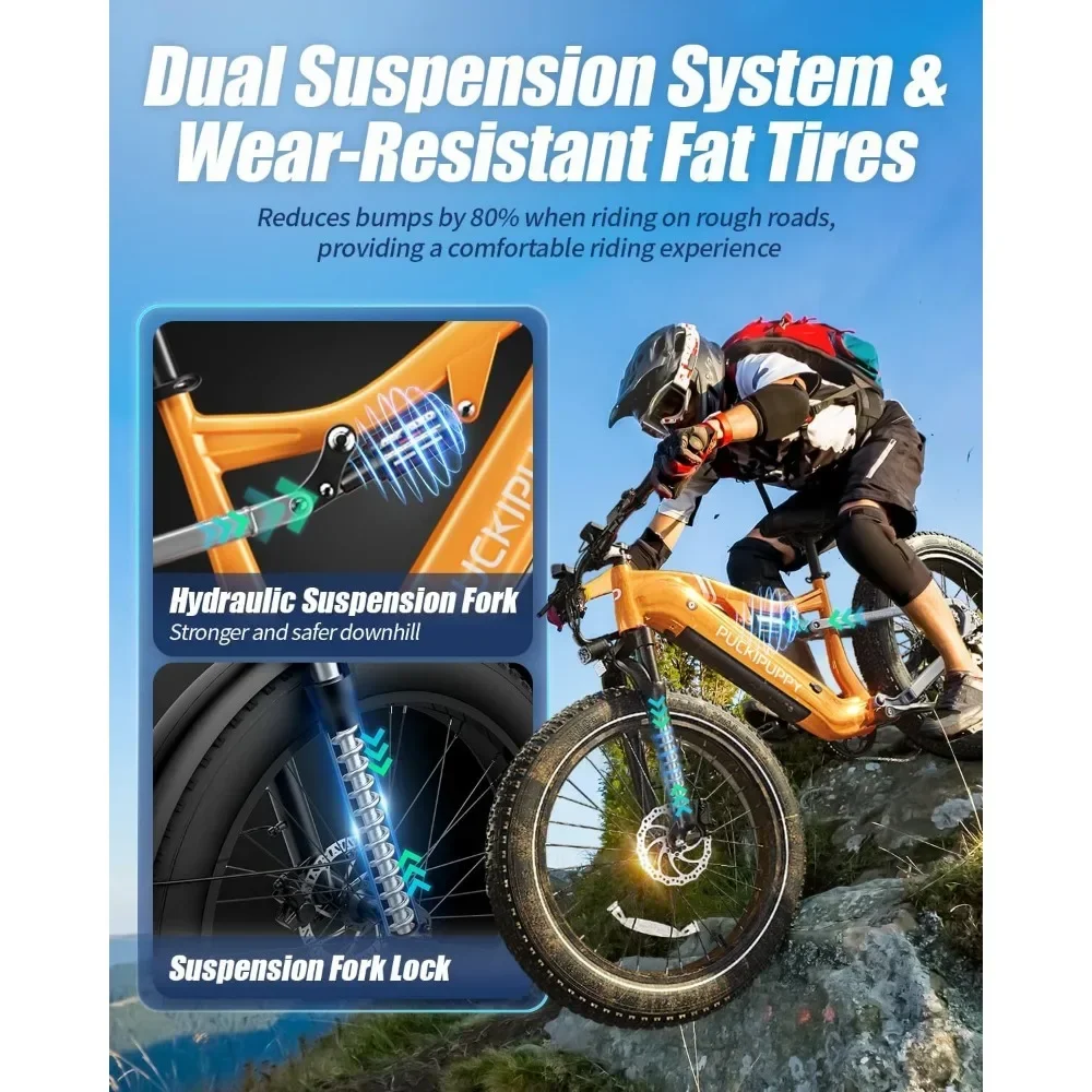 🚴𝟏𝟎𝟎𝟎𝐖 𝐏𝐞𝐚𝐤 𝐁𝐫𝐮𝐬𝐡𝐥𝐞𝐬𝐬 𝐌𝐨𝐭𝐨𝐫 & 𝟑𝟎𝐌𝐏𝐇 𝐓𝐨𝐩 𝐒𝐩𝐞𝐞𝐝: electric bike adopts 750W high-speed brushless rear hub motor (Peak 1000W). 90Nm of torque offers strong climbing power (40° Max climbing ability) . Top speed up to 30MPH in pedal assist mode, 20MPH in pure electric throttle mode. PUCKIPUPPY electric bikes had passed stringent UL 2849 testing (Testing lab name: UL LLC).