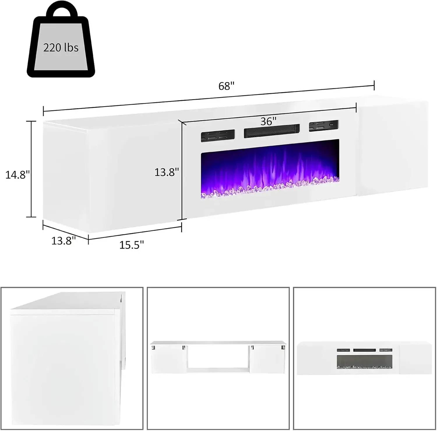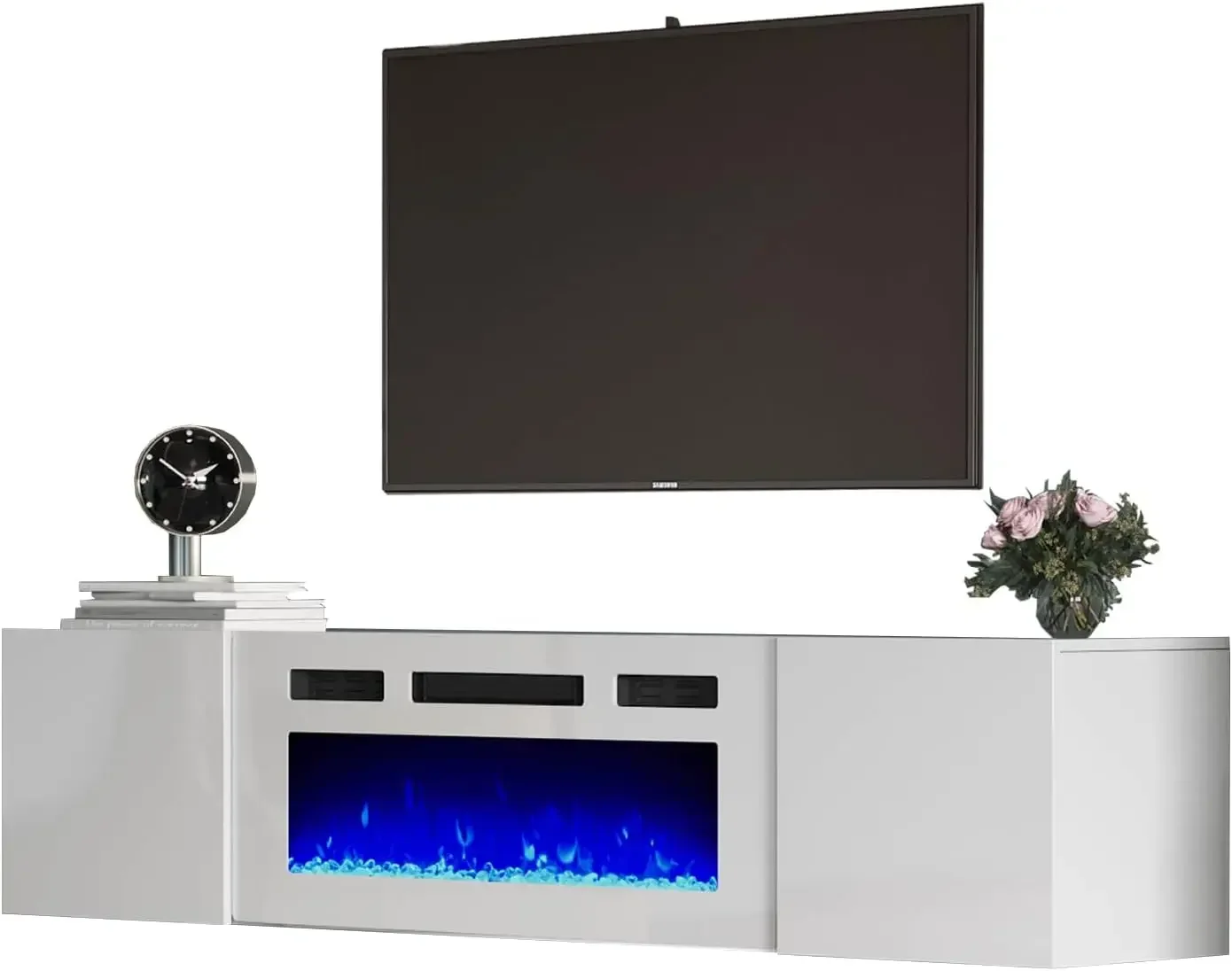 - 【Unique Floating Design】36 inches mirrored electric fireplace insert with 68 inches glossing floating media console combination features a modern and unique contemporary design for your living room.
