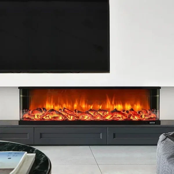 Indoor Electric Fireplace New Designed Surround 3 Sides 1500MM/60Inch Freestanding Stoves with Most Realistic Natural Decor Fire
