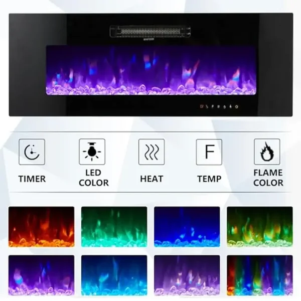 Optimized 40″ Fireplace: Upgraded fireplace includes an intelligent touchscreen. Control flame color and intensity, thermostat setting, on/off timer, and brightness with touchscreen panel and remote control.