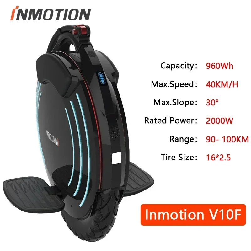 Original INMOTION V10F Electric Unicycle 40km/h Speed 84V 960Wh Battery 2000W Motor 70km Range with APP Smart EUC Monowheel