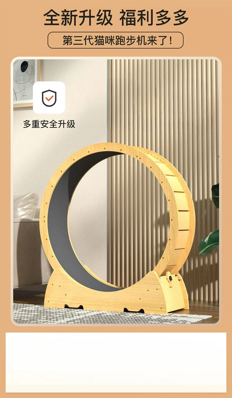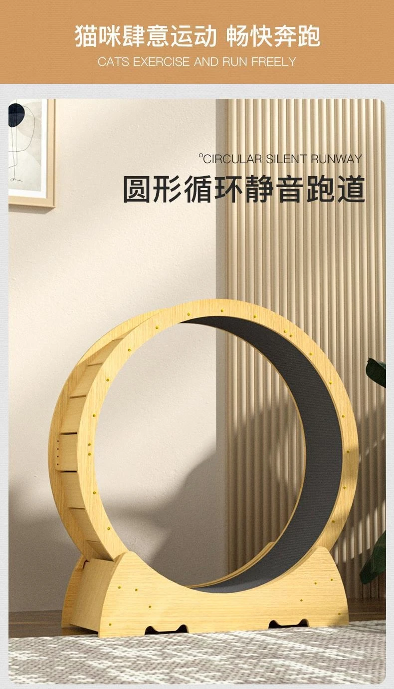 【Latest Cat Running Wheel】Most pet cats are overweight because they spend long hours indoors and lack exercise. Cat Exercise Wheel for Indoor Cat. And running is the best way to exercise, help your cat stay physically active and reduce boredom. Large Cat Running Wheel. This new upgrade of our cat wheel, silent and effective in preventing cats from pinching their feet, is great pet furniture.
