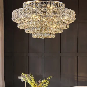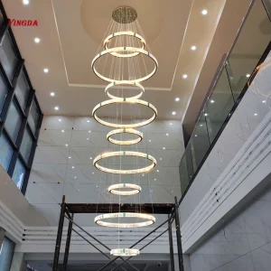 Hotel Theater Villa Large Chandelier Lighting Luxury Stainless Steel Multi-layer Top Long Crystal Lamp Living Room Lustres