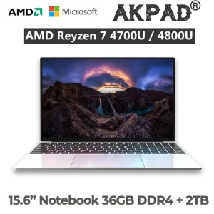 AKPAD RAM 32GB 2TB SSD 15.6 Inch Laptop Metal Ultrabook AMD Ryzen 7 4700U 4800U Windows 10 Gaming Computer Notebook 5G Bluetooth