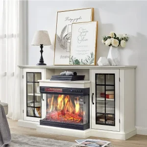 44″ Electric Fireplace, TV Stand for TVs Up To 80 Inch, 23” Fireplace Insert Heater W/ LED Flame, Electric Fireplaces