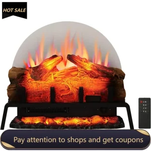 24″ Free Standing Electric Fireplace Log Set Insert, 750W/1500W Heater, 6 Flame Colors with 5 Brightness, Crackling Sound