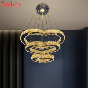 K9 Crystal Indoor Heart-Shaped Led Chandelier Creative Annular Stainless Steel Adjustable Ceiling Lamp Pendant Light Home Decor